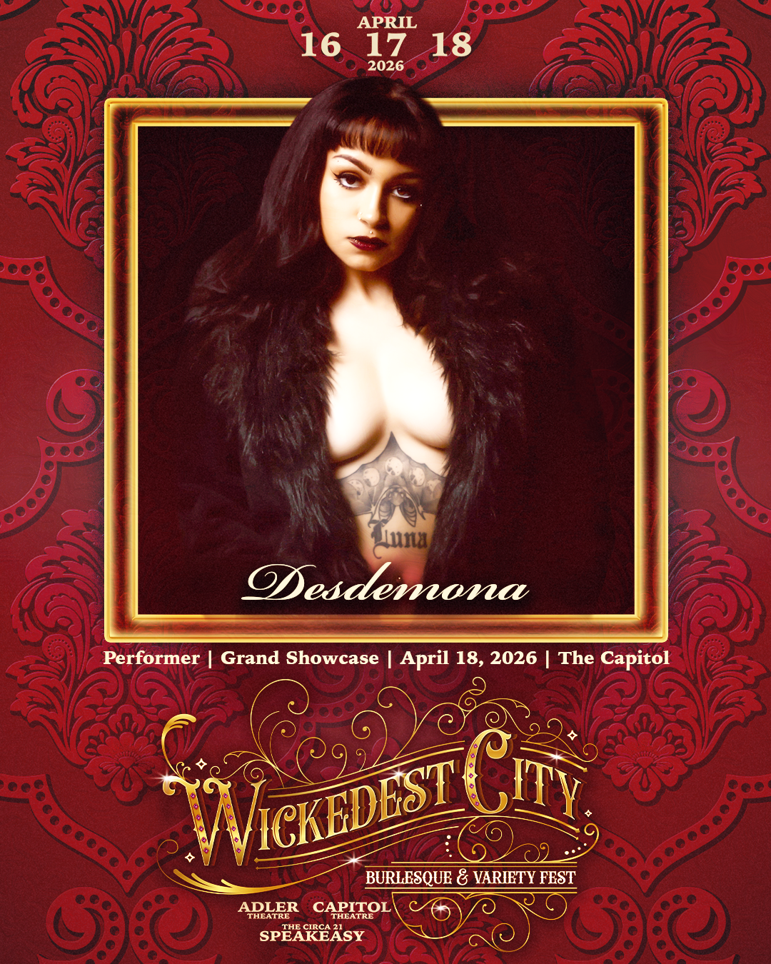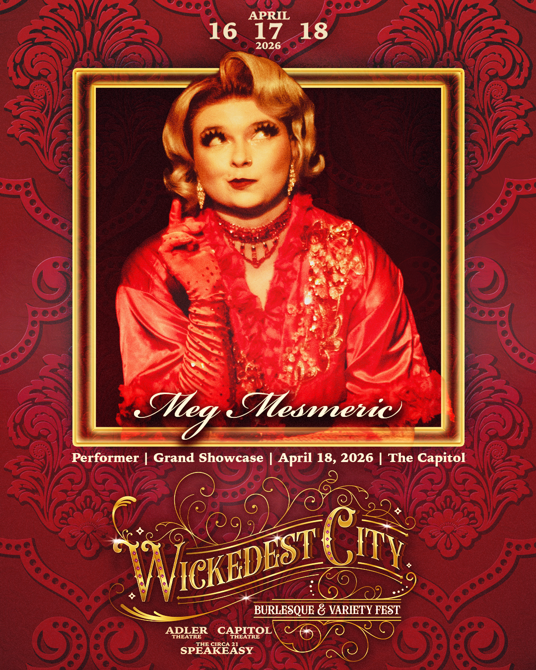After two nights of tease, triumph, and tantalizing spectacle, the Wickedest City Burlesque & Variety Fest closes in grand fashion at the historic Capitol Theatre. And like any proper bill, we’re ending with a bang, a wink, and maybe just a risk or two.